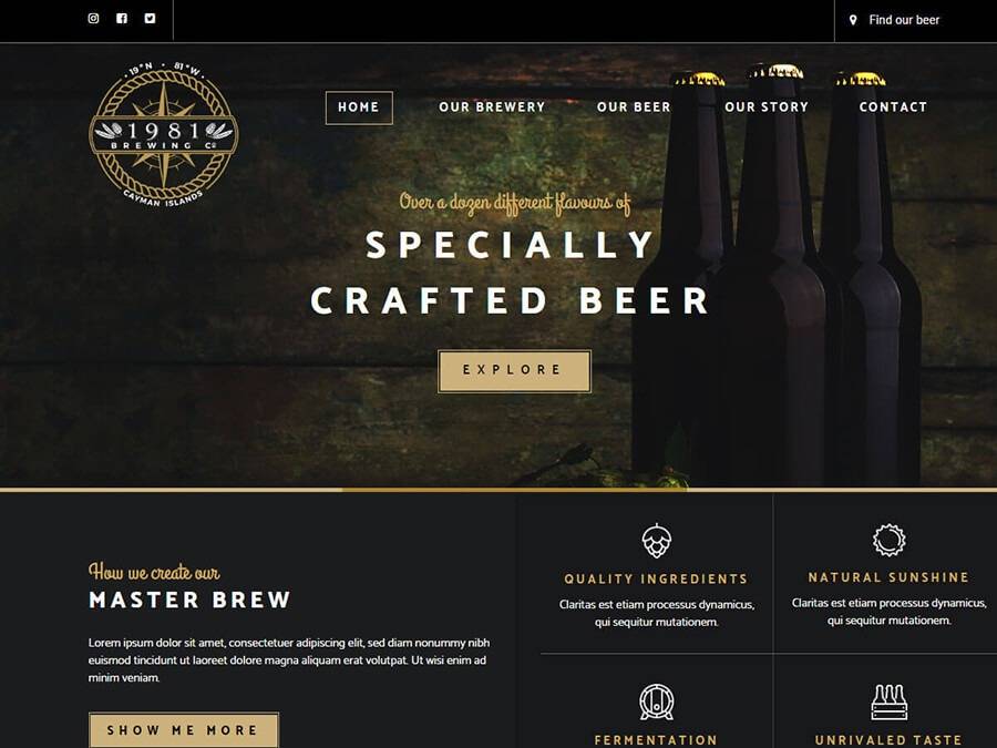 With what started as a napkin sketch – literally – our team at S-FX was able to design a custom logo for 1981 Brewing Co. that captured the essence of fine craft beer from the Cayman Islands. As the brand evolved, we developed a unique and interactive web presence for the soon-to-open brewery.