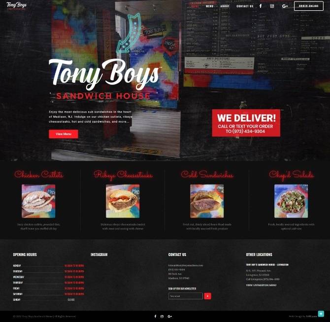 About the Client:Tony Boy’s Sandwich House is a gourmet deli and sandwich with two locations in North New Jersey. Originally founded in 2017 to satisfy the yearning for a quality sandwich shop that didn’t leave you feeling hungry – Tony Boy’s dedicated customers quickly allowed us to expand from Livingston, NJ to Madison, NJ.