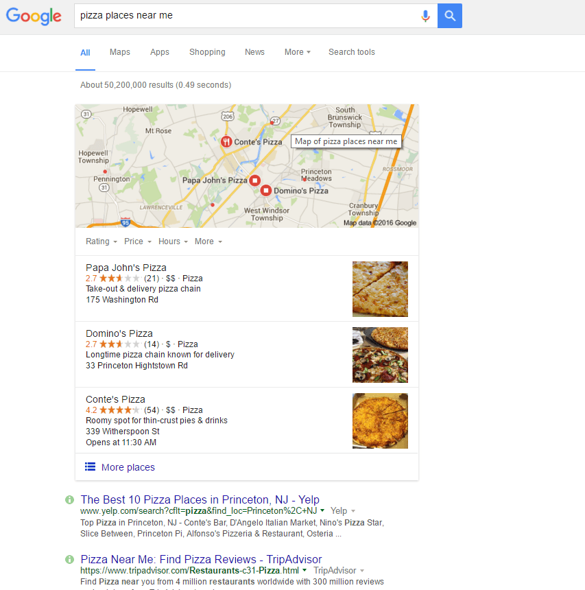 1. Increase Your Online Exposure: When a user types “Lawn Care in NJ” or “Pizza Places Near Me” the following shows up: